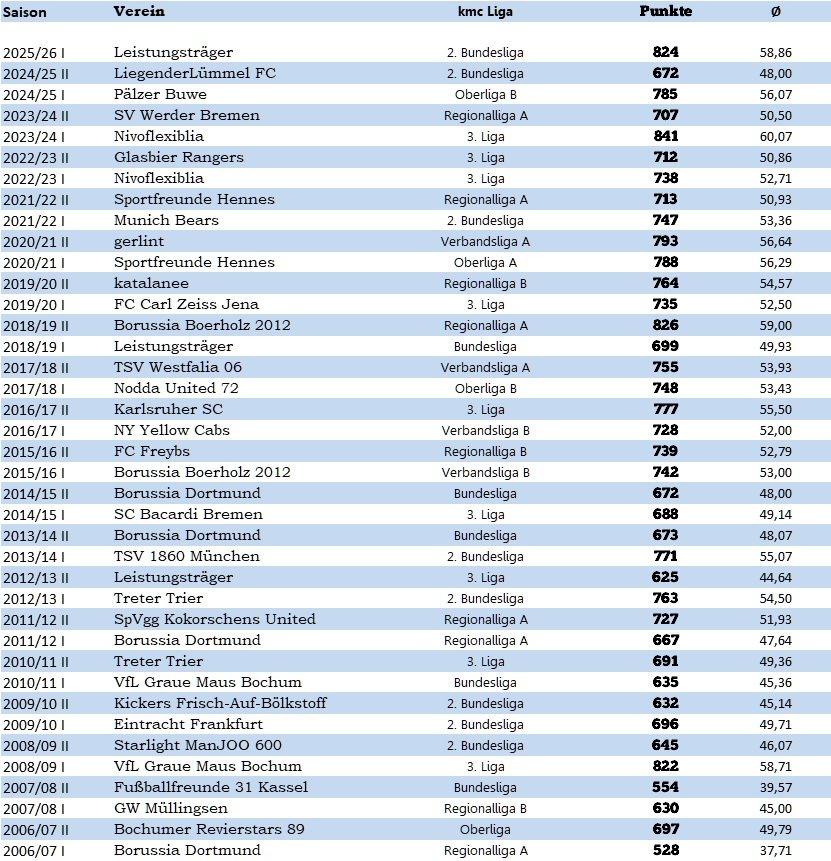 Alle kicker manager clan 'Goldene Schuh' Gewinner