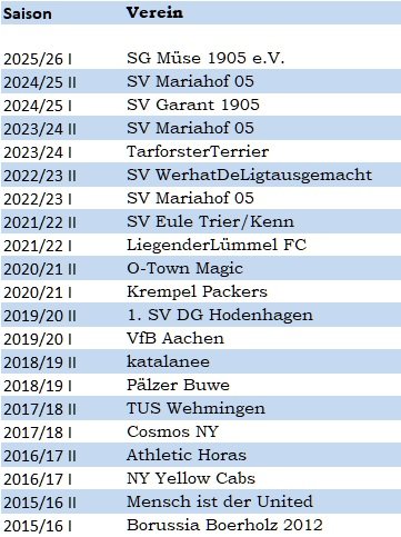 Die kmc Meister der Verbandsliga B von 2015 bis 2026 im Überblick