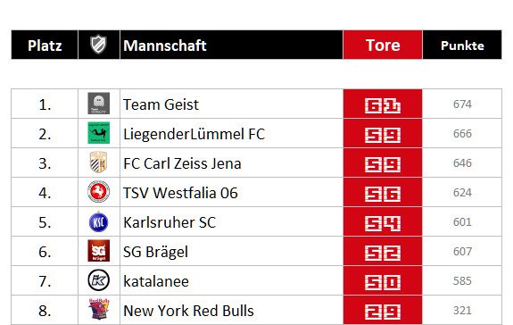 Aktuelle Torschützenliste nach dem 8. Spieltag