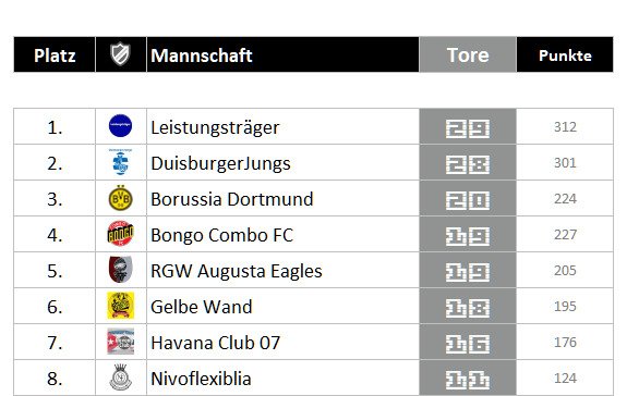 Aktuelle Torschützenliste nach dem 8. Spieltag