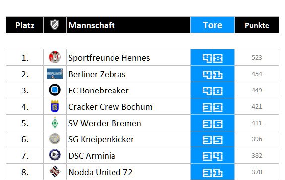 Aktuelle Torschützenliste nach dem 8. Spieltag