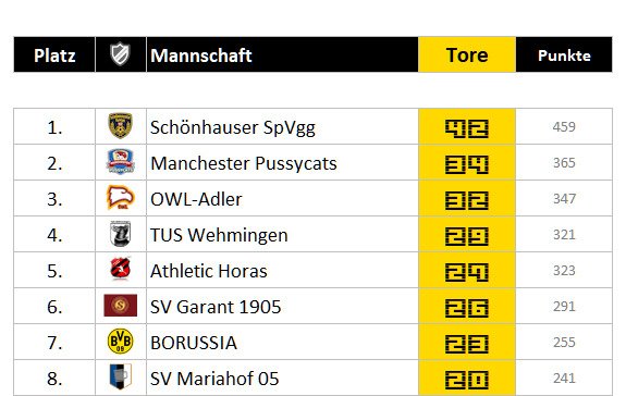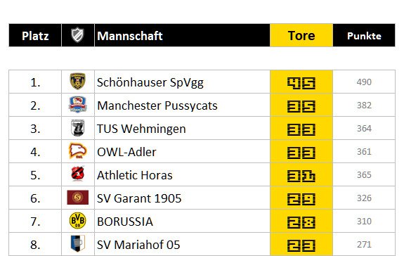 Aktuelle Torschützenliste nach dem 8. Spieltag
