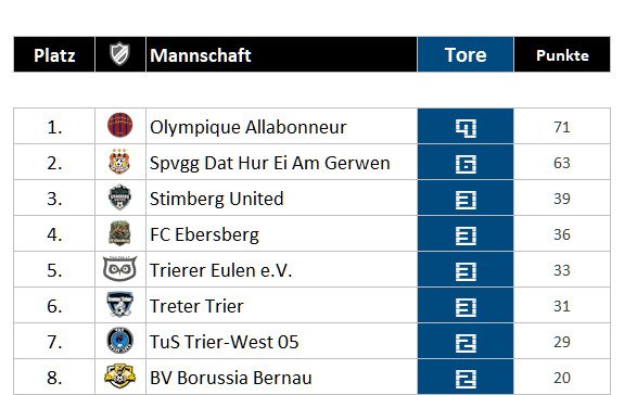Torschützenliste der kmc Verbandsliga A