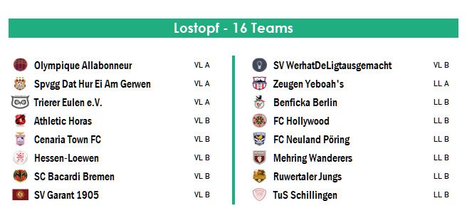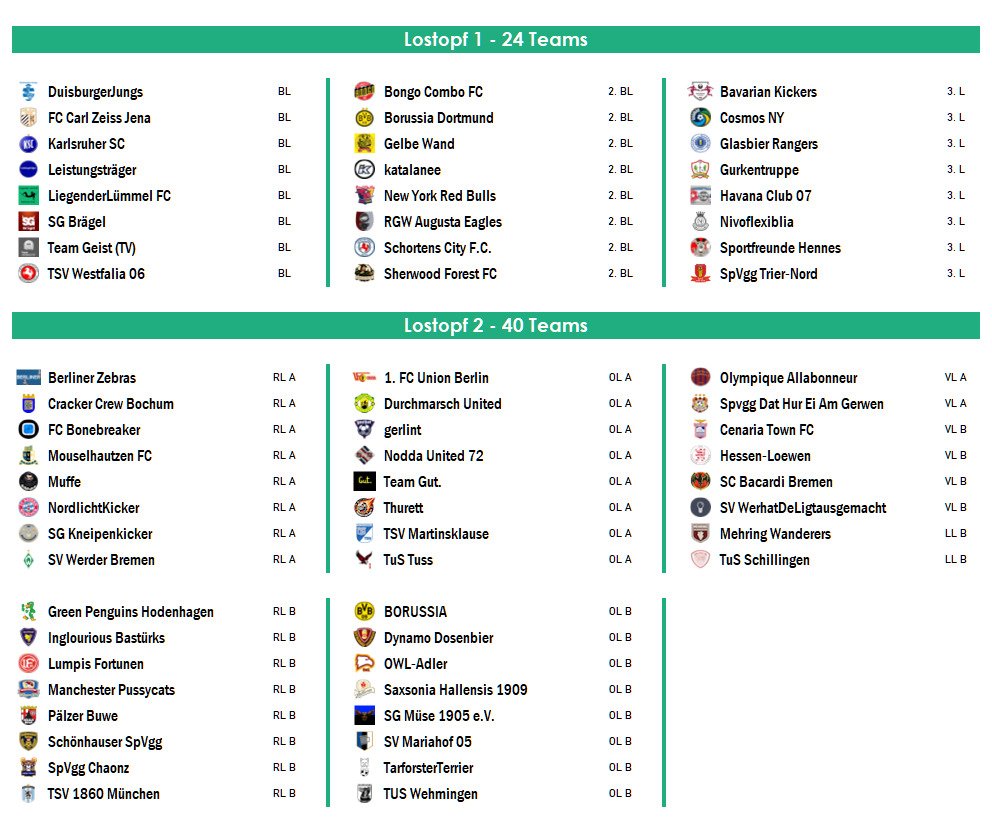 Die Auslosung der 1. Runde folgt in den nächsten Tagen "as-live" auf YouTube