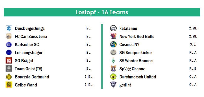 Die Auslosung des Achtelfinale folgt in den nächsten Tagen "as-live" auf YouTube...