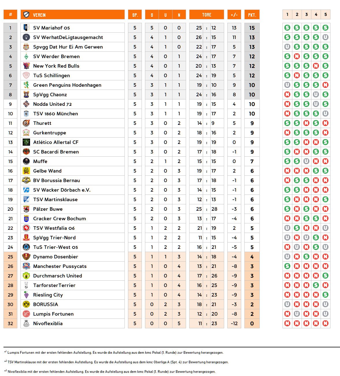 Gruppenphase - 5. Spieltag | Tabelle