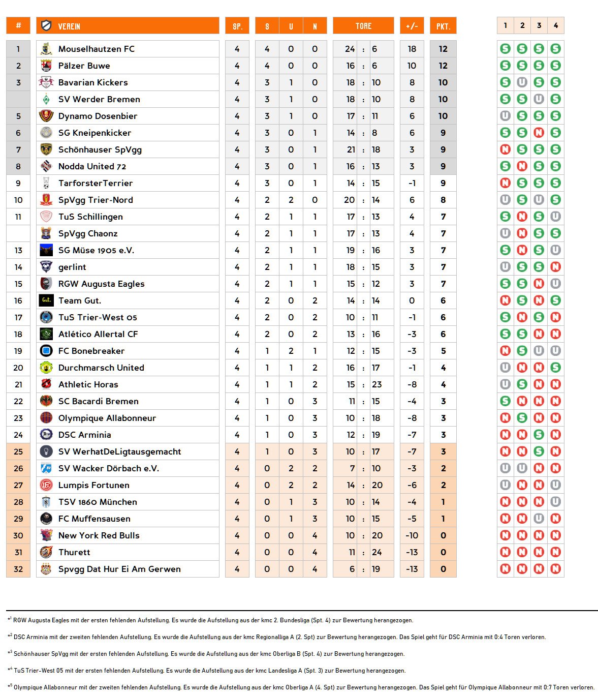 Gruppenphase - 4. Spieltag | Tabelle