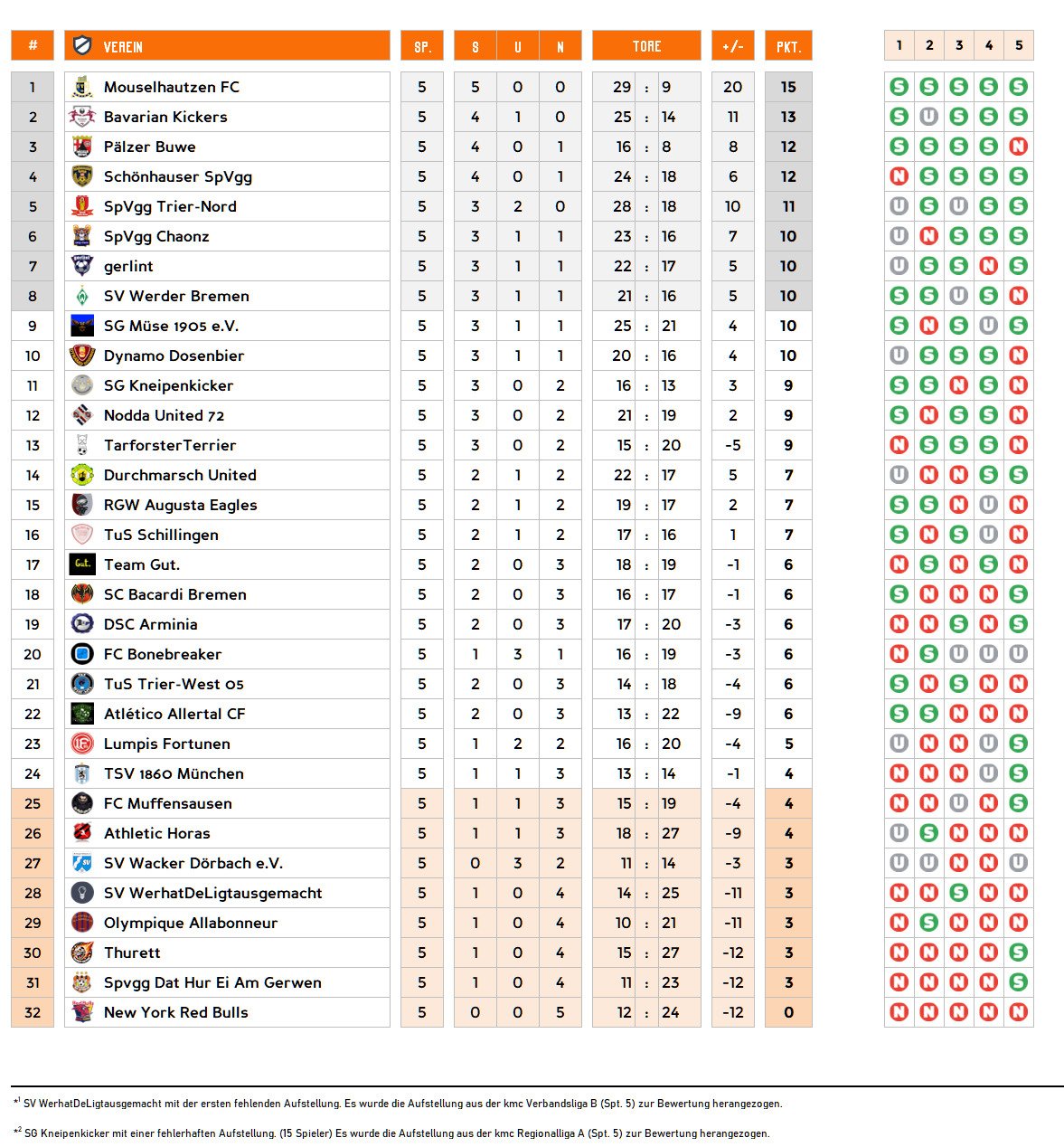 Gruppenphase - 5. Spieltag | Tabelle