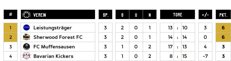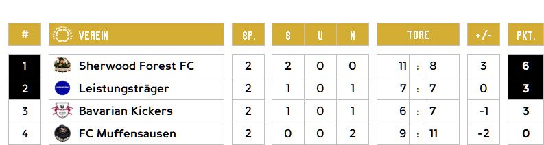 Gruppe H | Bavarian Kickers - Sherwood Forest FC - Leistungsträger - FC Muffensausen