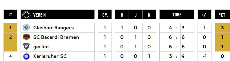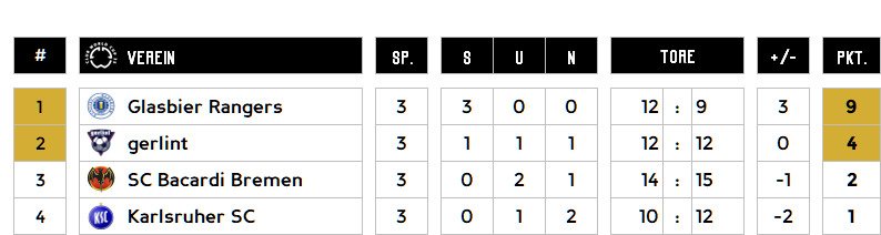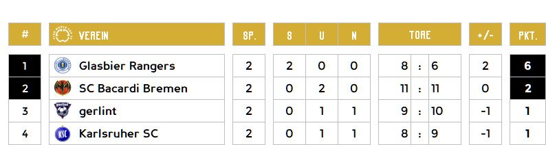 Gruppe C | SC Bacardi Bremen - gerlint - Karlsruher SC - Glasbier Rangers