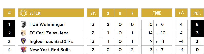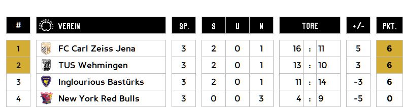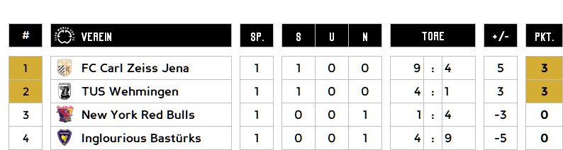 Gruppe A | Inglourious Bastürks - FC Carl Zeiss Jena - New York Red Bulls - TUS Wehmingen