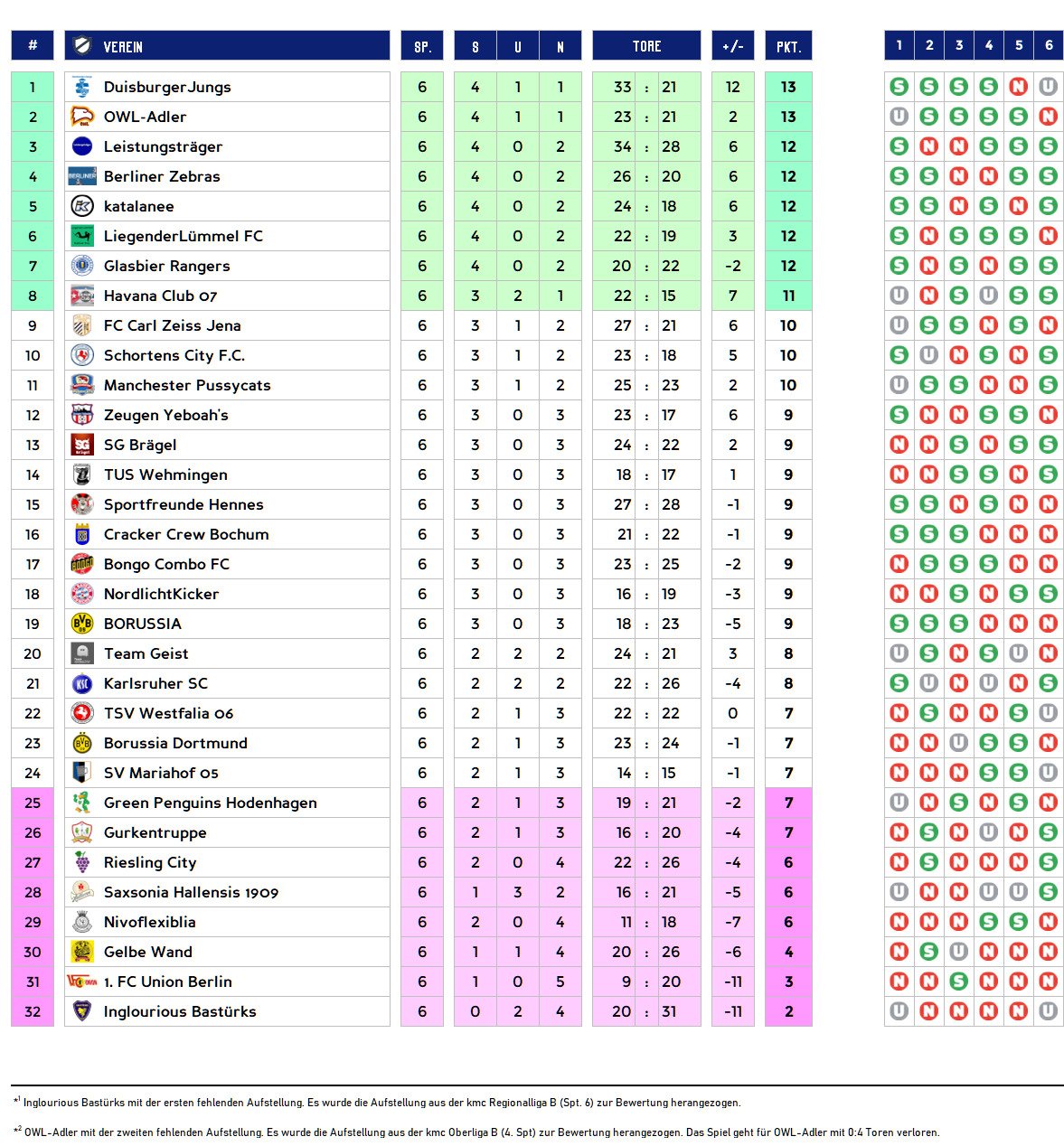 Gruppenphase - 6. Spieltag | Tabelle