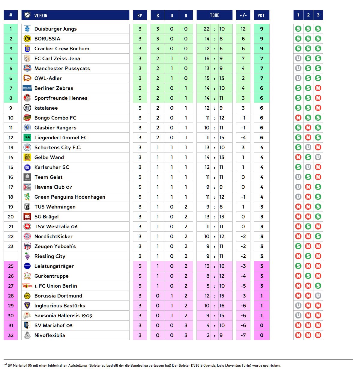Gruppenphase - 3. Spieltag | Tabelle