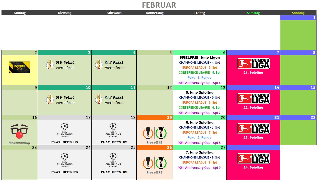 Rahmenterminkalender 2025/26 II (Aufstellungen bis Freitag, 20. Februar um 20.29 Uhr !)