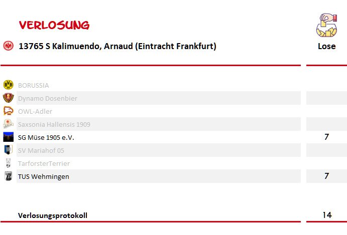 SG Müse bewirbt sich auf: 13765 S Kalimuendo, Arnaud (Eintracht Frankfurt)