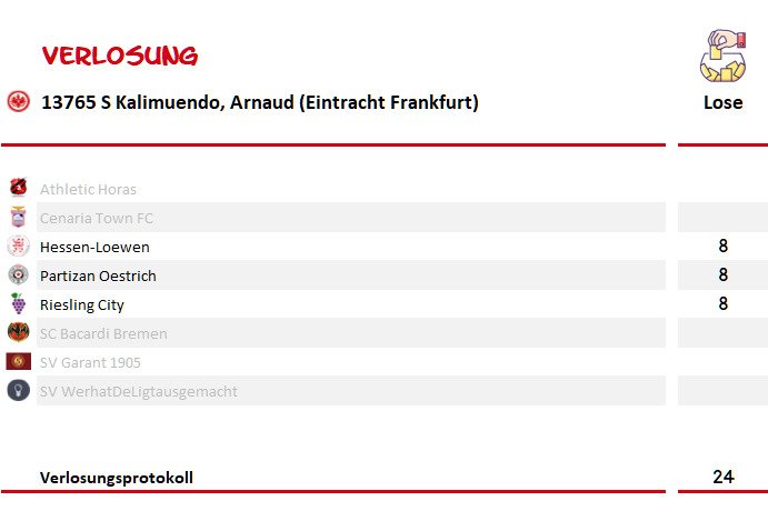 01. Hessen-Loewen 8 02. Partizan Oestrich 8 03. Partizan Oestrich 7 04. Partizan Oestrich 6 05. Riesling City 8 06. Riesling City 7 07. Riesling City 6 08. Riesling City 5 09. Riesling City 4 10. Hessen-Loewen 7 11. Partizan Oestrich 5 12. Riesling City 3 13. Hessen-Loewen 6 14. Hessen-Loewen 5 15. Riesling City 2 16. Hessen-Loewen 4 17. Hessen-Loewen 3 18. Partizan Oestrich 4 19. Partizan Oestrich 3 20. Partizan Oestrich 2 21. Riesling City 1 22. Hessen-Loewen 2 23. Hessen-Loewen 1 24. Partizan Oestrich 1