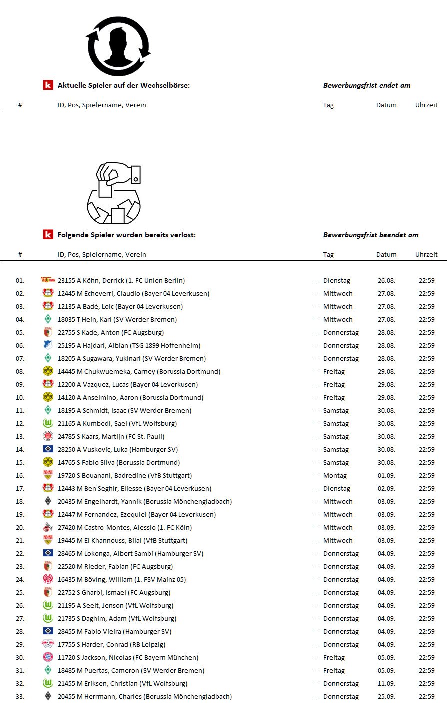 Timetable 2019/20 II (Lineups until Saturday, 04. July at 13.29 !)
